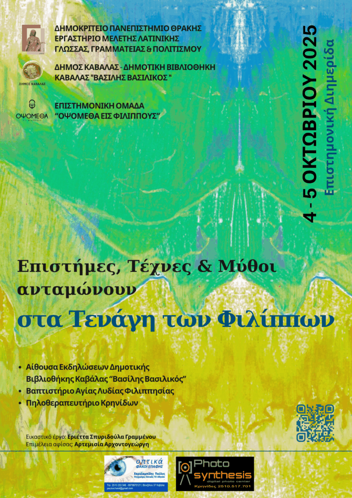Οι συντελεστές του εγχειρήματος: το Εργαστήριο Μελέτης Λατινικής Γλώσσας, Γραμματείας & Πολιτισμού του Δημοκρίτειου Πανεπιστήμιου Θράκης, η Δημοτική Βιβλιοθήκη «Βασίλης Βασιλικός» για τον Δήμο Καβάλας και η Eπιστημονική Ομάδα «Ὀψόμεθα εἰς Φιλίππους» προσκαλούν το κοινό σε αυτή τη διημερίδα για να γνωρίσουν εκ του σύνεγγυς τον χώρο και την ιστορία των Τεναγών.