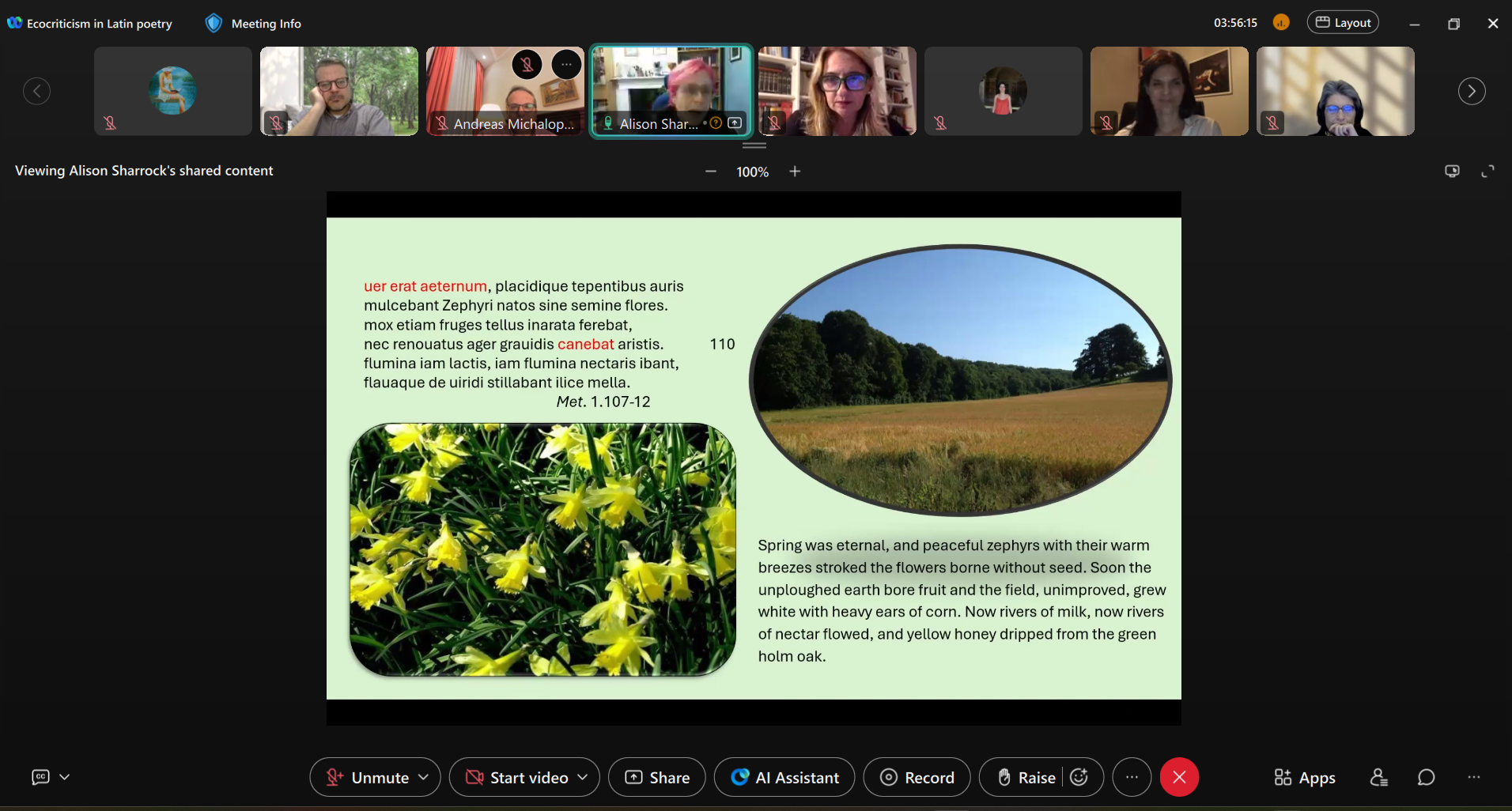 Το συνέδριο αυτό αποσκοπεί να διερευνήσει τη λατινική ποίηση μέσα από το πρίσμα της οικοκριτικής σκέψης, ενισχύοντας έτσι τον συνεχιζόμενο διάλογο και την ανάπτυξη του θεωρητικού υπόβαθρου της οικοκριτικής τόσο ως θεωρίας ανάγνωσης των κλασικών κειμένων όσο και ως μέσου επαναπροσδιορισμού των δυναμικών ορίων ανάμεσα στη φύση και τον πολιτισμό στη σύγχρονη εποχή.