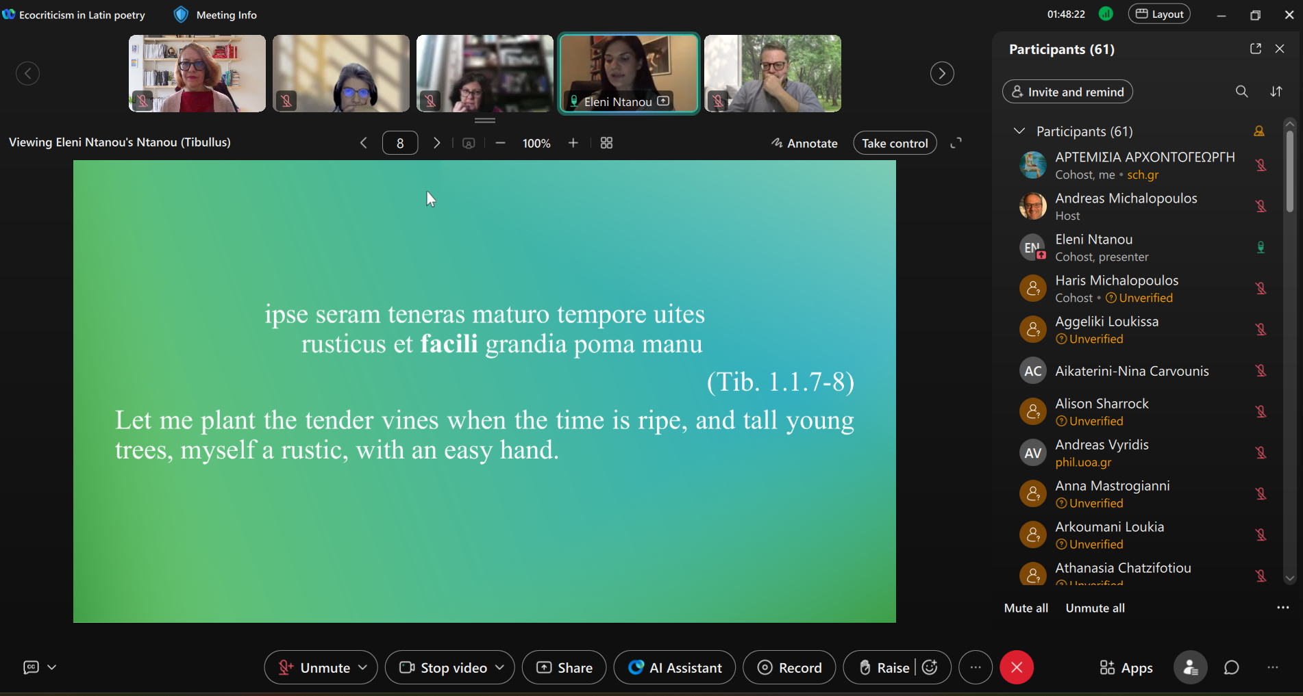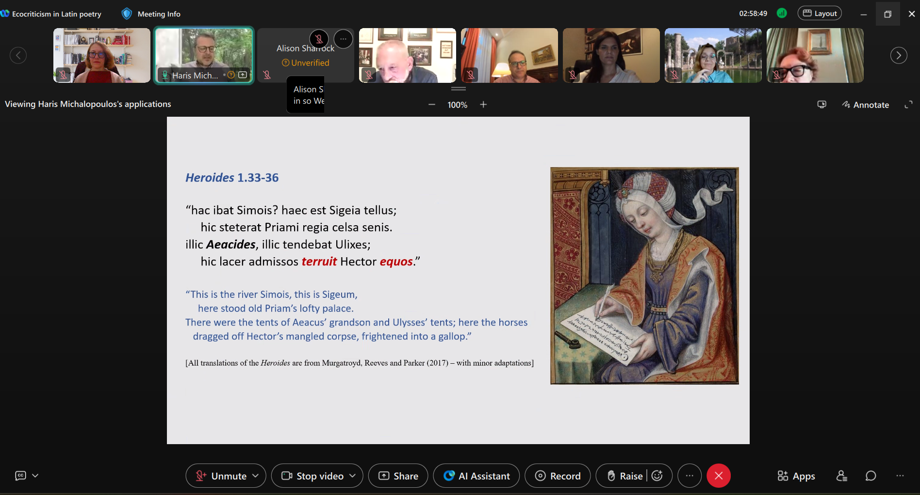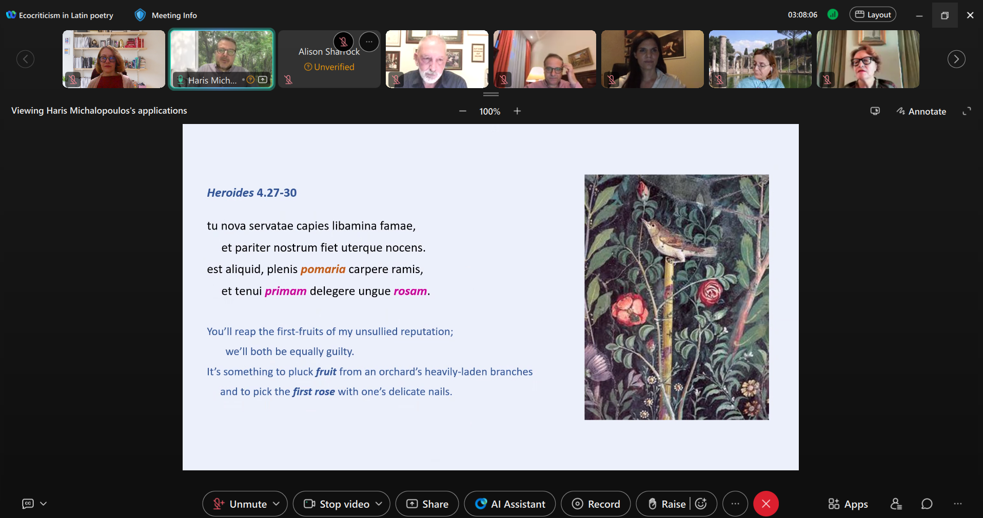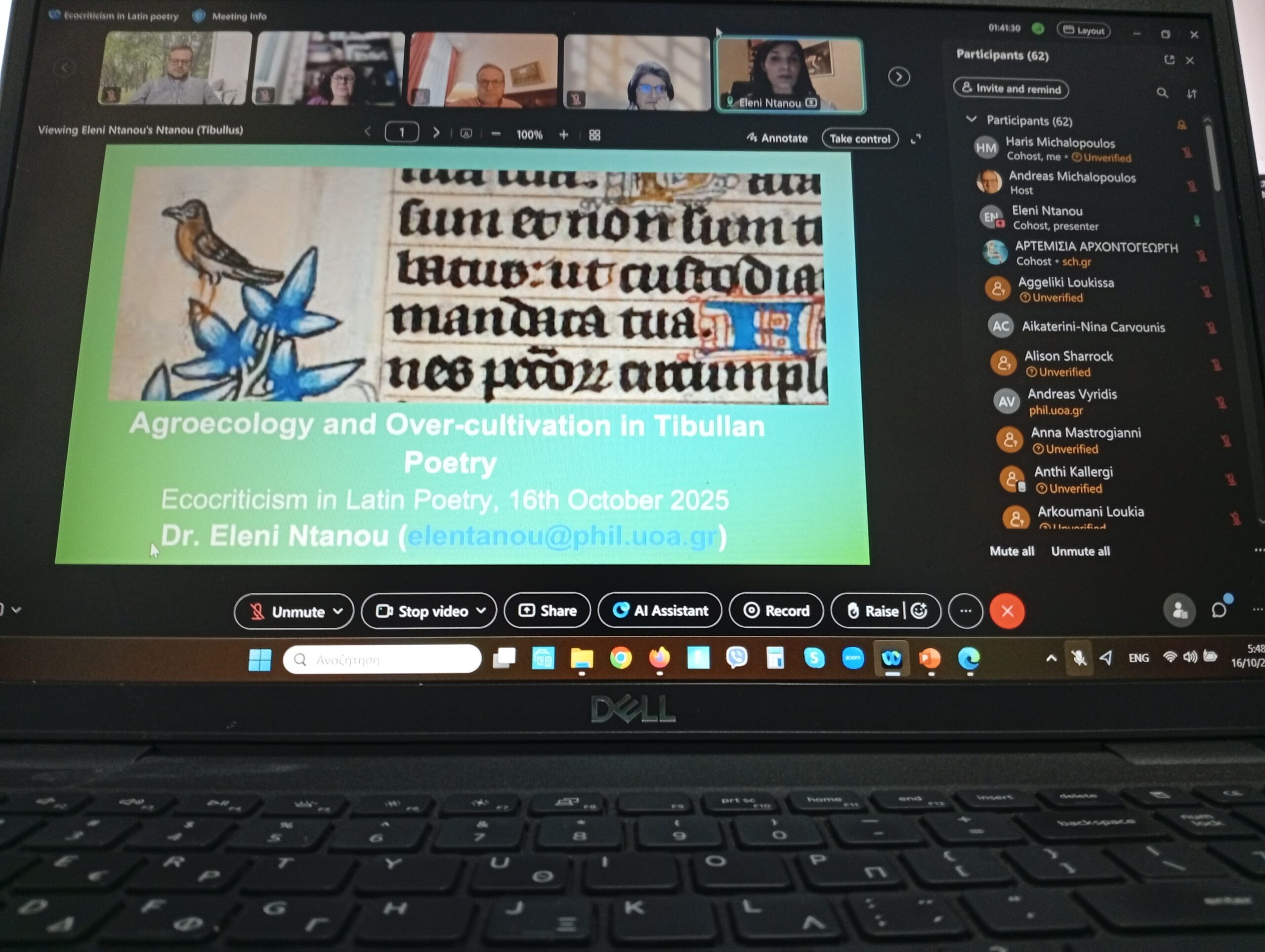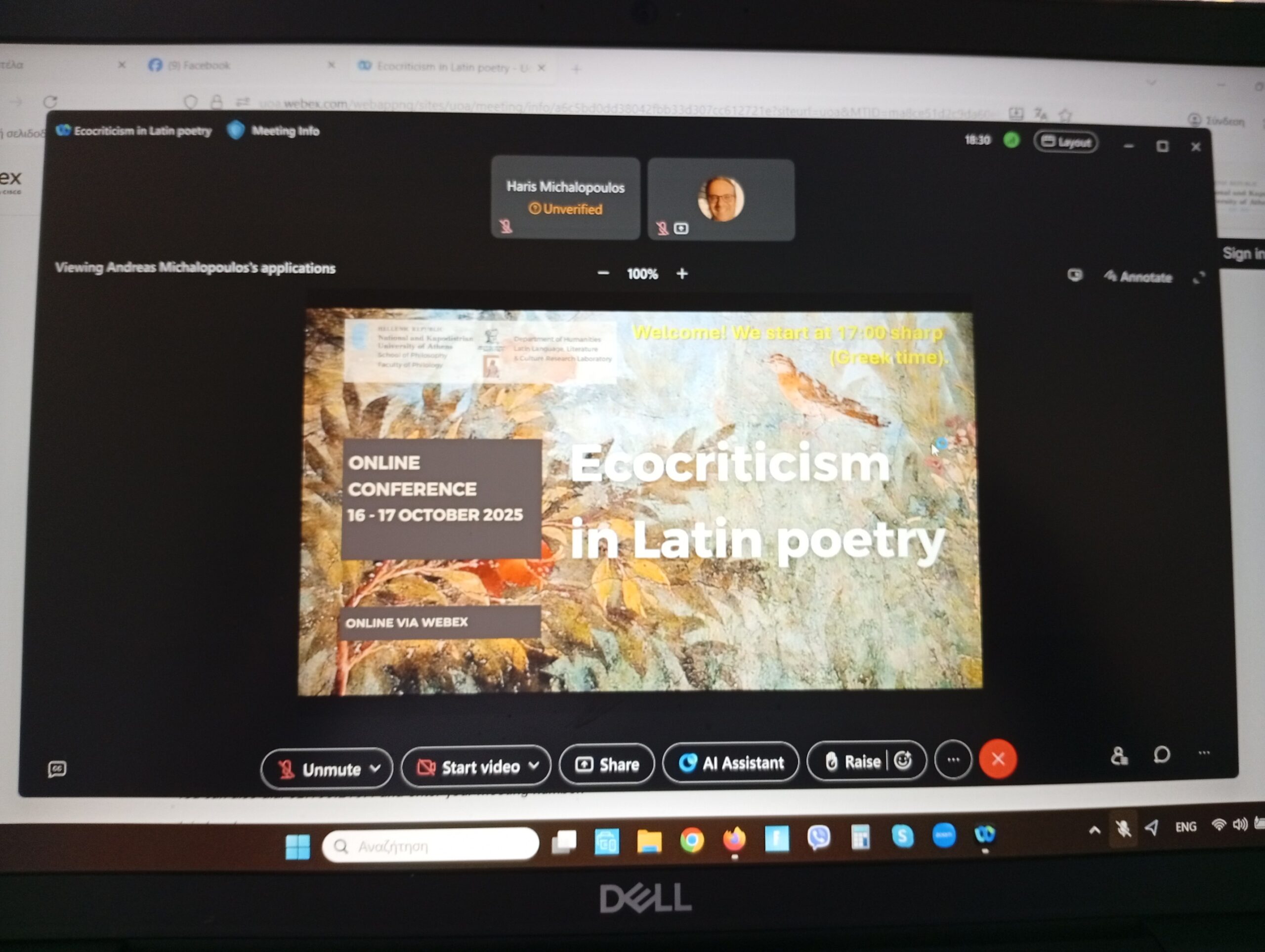 Ο Αναπληρωτής Καθηγητής Λατινικής Φιλολογίας του Τμήματος Ανθρωπιστικών Σπουδών ΔΠΘ και Διευθυντής του Εργαστηρίου Μελέτης Λατινικής Γλώσσας, Γραμματείας και Πολιτισμού Χάρης Μιχαλόπουλος σε μία συζήτηση σχετικά με το Διεθνές Συνέδριο με τίτλο «Οικοκριτική στη Λατινική Ποίηση», που πραγματοποιήθηκε διαδικτυακά στις 16 και 17 Οκτωβρίου.